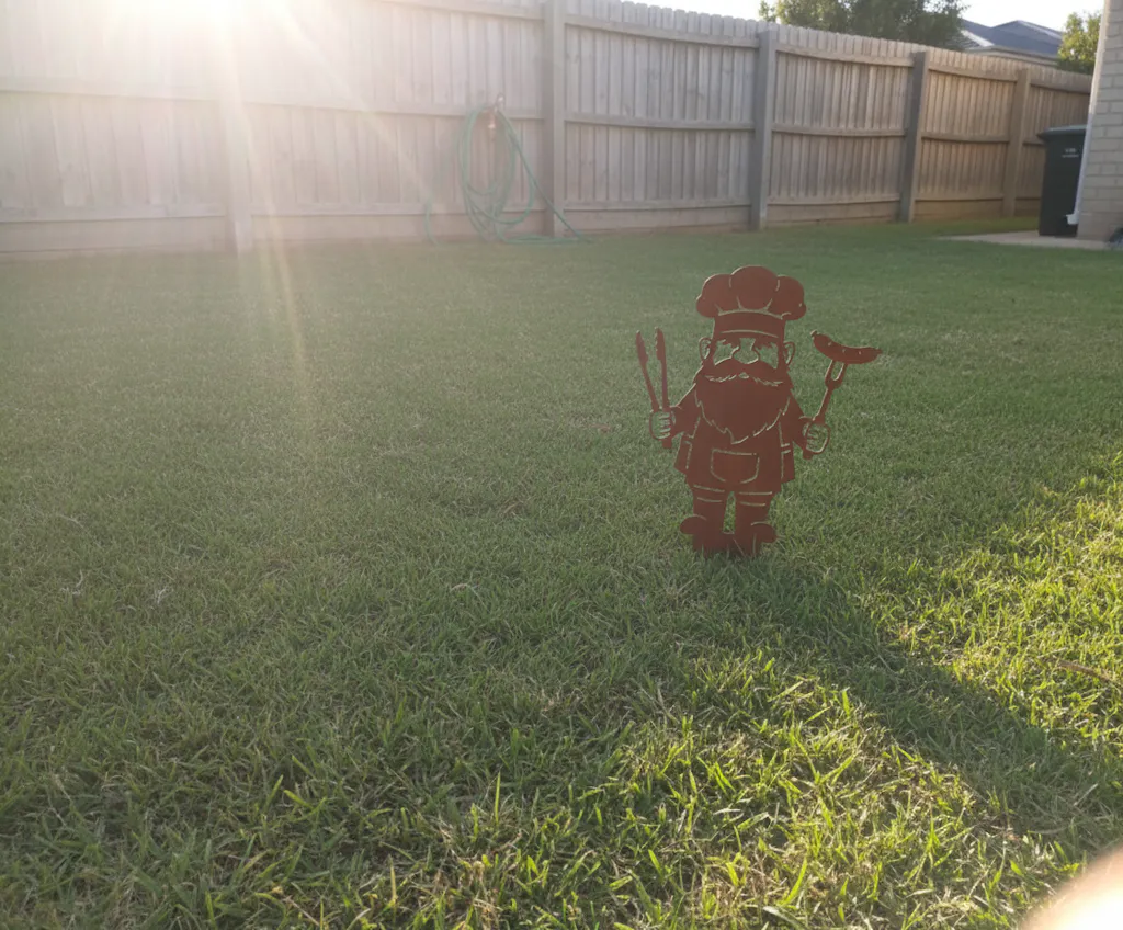 Hand-cut from 2mm Australian steel, 'The Pitmaster' is built tougher than a burnt chop. Stake him into the ground near the BBQ area, out by the entertaining deck, or anywhere your yard could use a bloke who knows his way around a pair of tongs - no assembly, no gas bottle required.
